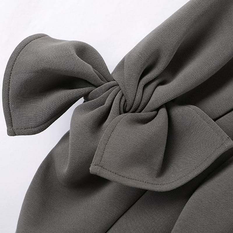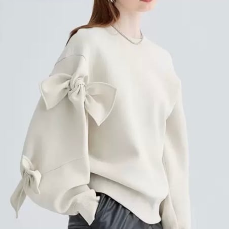 カジュアルな印象のトレーナーも両腕のリボンが大人可愛さを演出してくれます。オーバーサイズなので体型カバーしてくれるのもポイント。
